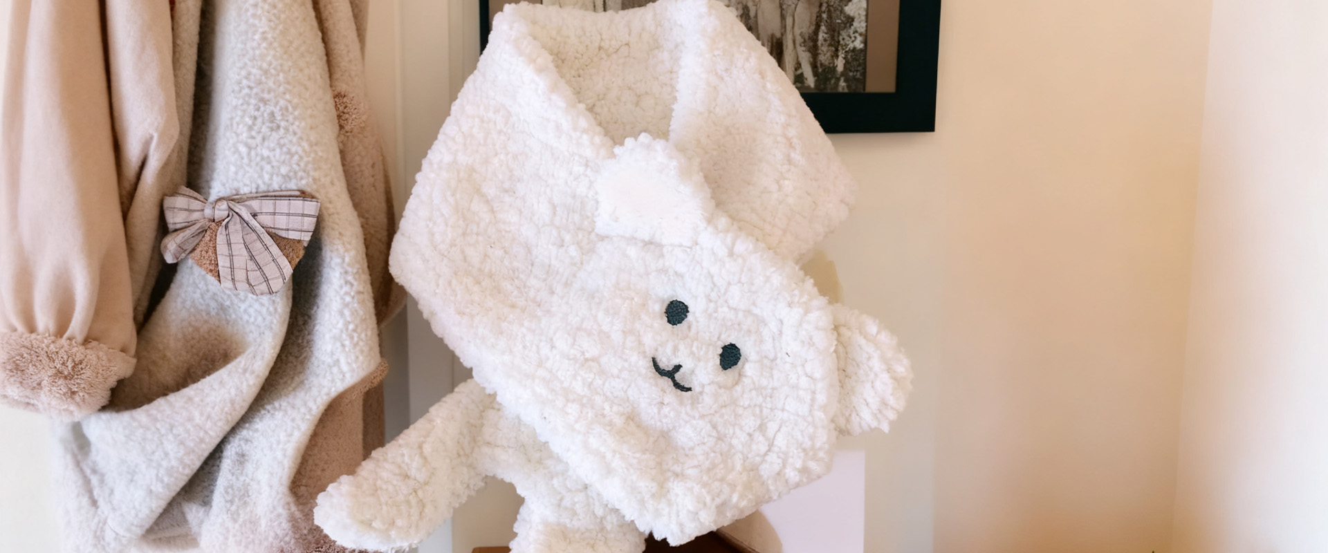 冬用かわいい白クマスカーフ 柔らかい肌触り 多用途クロスタイ