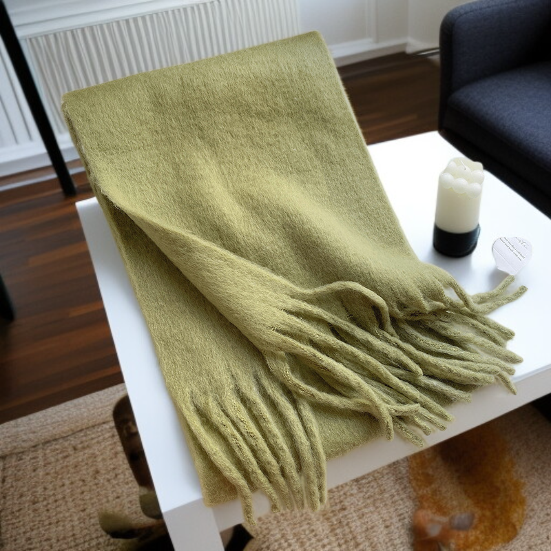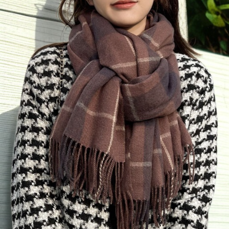 シンプルな無地デザインで、どんなコーディネートにも合わせやすく、男女問わずカップルや学生におすすめの万能スカーフです。