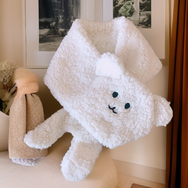 冬用かわいい白クマスカーフ 柔らかい肌触り 多用途クロスタイ