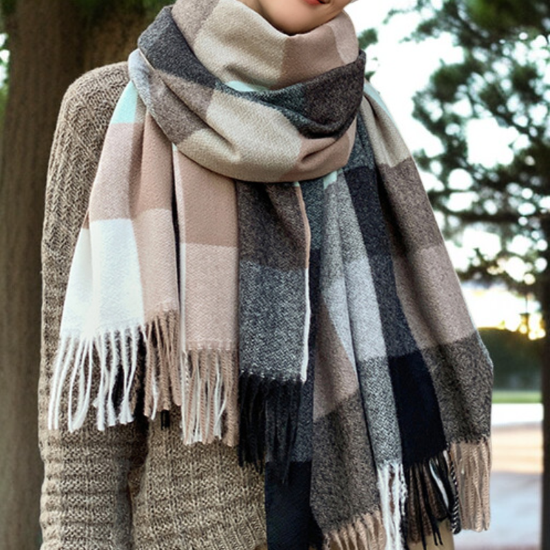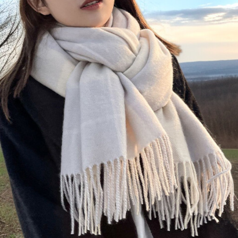 レディースフェイクカシミアショール、秋冬用厚手ウールスカーフ