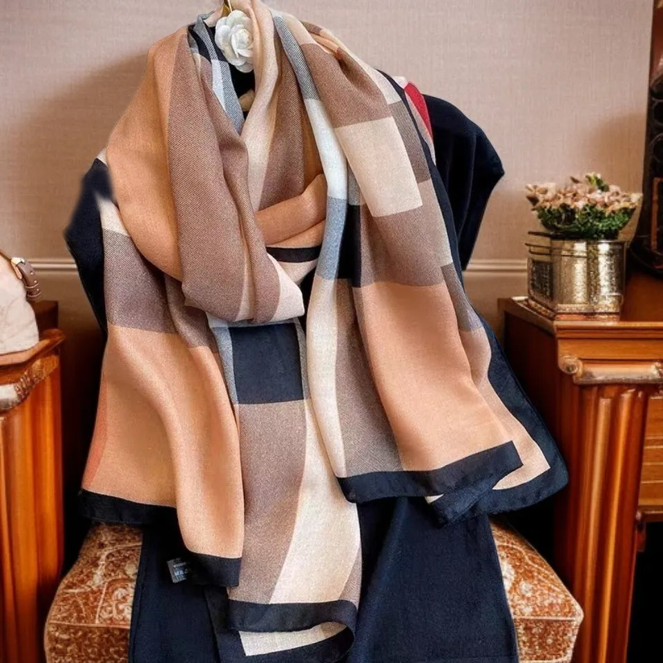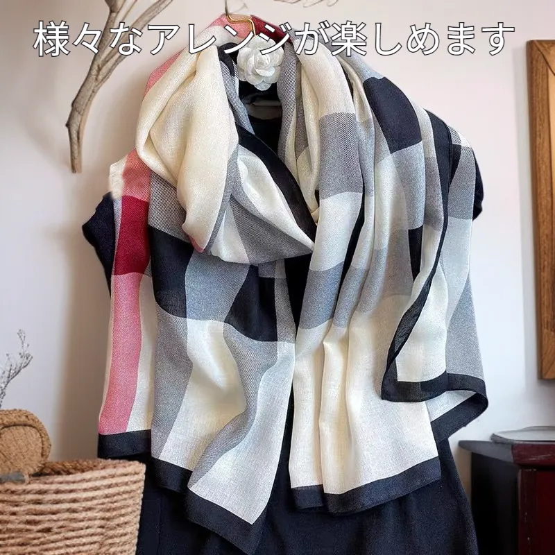 レディースコットン&リネンスカーフ、カラーブロックショール、薄型スタイル、春と秋に適しています。